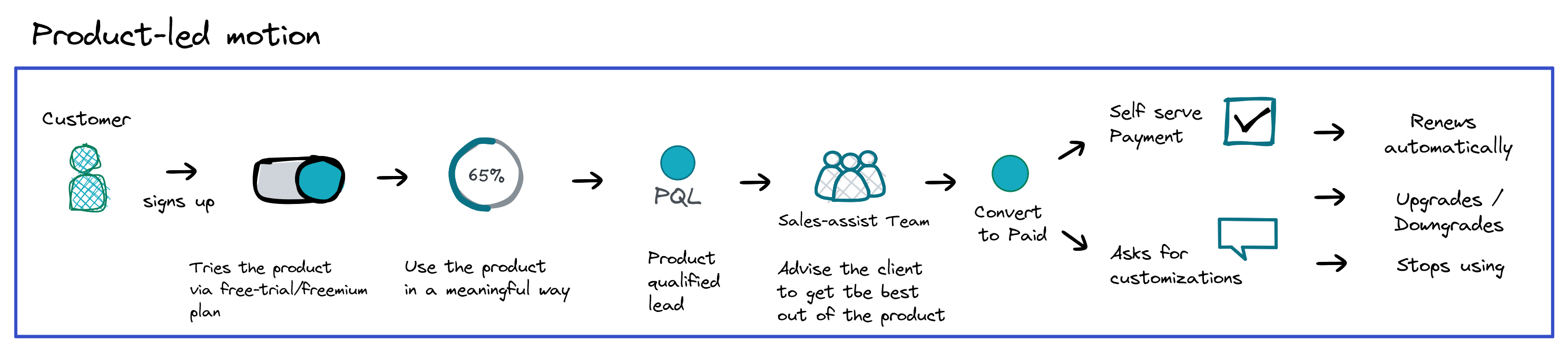 In the PLG model, instead of working on new leads, the function of a sales-assist team is to convert a user either to a paid one or to a higher tier than what they are on currently. This takes away the selling part and turns it into user enablement - helping them to get the best out of the product. Since every user might have a different use case, a sales-assist resource needs to be well informed on the finer technical details of the product. Also, with this user intelligence, product leads can now discover new use cases for the product.